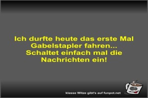 | Ich durfte heute das erste Mal Gabelstapler fahren Bild (25.55 KB) 1Lustiges → klasse Sprüche und Witze | Lustiges → klasse Sprüche und Witze | 26.07.-10:42 | Fossy | |