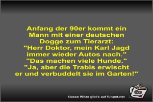 | Anfang der 90er kommt ein Mann mit einer deutschen Dogge... Bild (40.76 KB) 3Lustiges → klasse Sprüche und Witze | Lustiges → klasse Sprüche und Witze | 25.07.-18:47 | Fossy | |