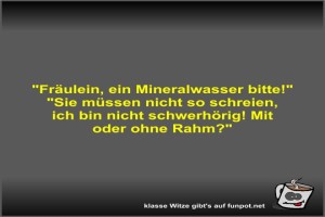 | "Fräulein, ein Mineralwasser bitte!" Bild (25.44 KB) 1Lustiges → klasse Sprüche und Witze | Lustiges → klasse Sprüche und Witze | 26.07.-17:38 | Fossy | |
