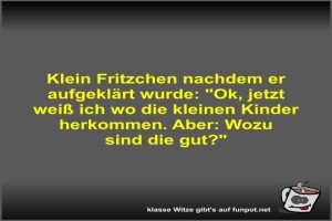 | Klein Fritzchen nachdem er aufgeklärt wurde Bild (30.31 KB) 3Lustiges → klasse Sprüche und Witze | Lustiges → klasse Sprüche und Witze | 24.07.-12:53 | Fossy | |
