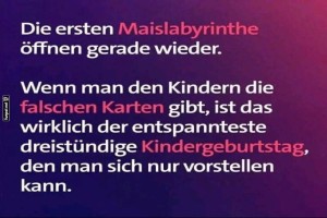 | Kindergeburtstag im Maislabyrinth: Ruhe garantiert! Bild (124.51 KB) 3Lustiges → klasse Sprüche und Witze | Lustiges → klasse Sprüche und Witze | 25.07.-11:25 | Samu51 | |