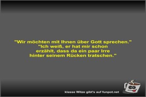 | Wir möchten mit Ihnen über Gott sprechen Bild (22.37 KB) 2Lustiges → klasse Sprüche und Witze | Lustiges → klasse Sprüche und Witze | 27.07.-14:11 | Fossy | |