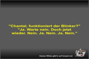 | Chantal, funktioniert der Blinker? Bild (22.51 KB) 1Lustiges → klasse Sprüche und Witze | Lustiges → klasse Sprüche und Witze | 27.07.-10:39 | Fossy | |