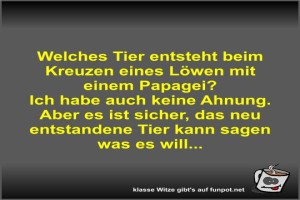 | Welches Tier entsteht beim Kreuzen eines Löwen mit einem... Bild (39.17 KB) 2Lustiges → klasse Sprüche und Witze | Lustiges → klasse Sprüche und Witze | 26.07.-13:36 | Fossy | |