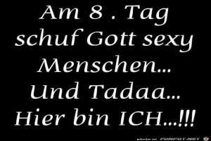 | Am 8. Tag Bild (31.86 KB) 1Lustiges → klasse Sprüche und Witze | Lustiges → klasse Sprüche und Witze | 28.09.23-07:34 | Keule56 | |