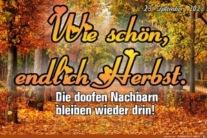 | Endlich Herbst Bild (929.09 KB) 4Lustiges → klasse Sprüche und Witze | Lustiges → klasse Sprüche und Witze | 26.09.23-22:02 | Bonobo666 | |