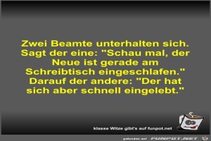 | Zwei Beamte unterhalten sich Bild (36.89 KB) 2Lustiges → klasse Sprüche und Witze | Lustiges → klasse Sprüche und Witze | 25.09.23-13:16 | Fossy | |