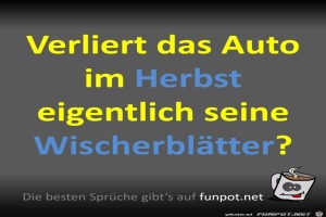 | Gute Frage Bild (66.14 KB) 7Lustiges → klasse Sprüche und Witze Zum Glück fallen die Wischerblätter im Herbst nicht einfach ab ;-) Das wäre ja noch schöner! | Lustiges → klasse Sprüche und Witze | 25.09.23-16:08 | Fossy | |