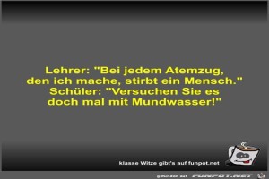 | Lehrer: Bei jedem Atemzug Bild (25.73 KB) 3Lustiges → klasse Sprüche und Witze | Lustiges → klasse Sprüche und Witze | 26.09.23-19:26 | Fossy | |