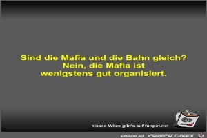 | Sind die Mafia und die Bahn gleich? Bild (20.92 KB) 3Lustiges → klasse Sprüche und Witze | Lustiges → klasse Sprüche und Witze | 24.09.23-12:45 | Fossy | |