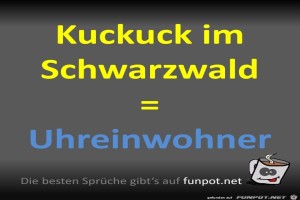 | Uhreinwohner Bild (57 KB) 7Lustiges → klasse Sprüche und Witze Den Kuckuck kann man im Schwarzwald durchaus als Uhreinwohner bezeichnen ;-) | Lustiges → klasse Sprüche und Witze | 25.09.23-16:08 | ||