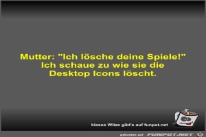 | Mutter: "Ich lösche deine Spiele!" Bild (22.13 KB) von Fossy am 31. Dezember 2023 um 09:54 Uhr Lustiges → klasse Sprüche und Witze | Lustiges → klasse Sprüche und Witze | 31.12.23-09:54 | Fossy | ||