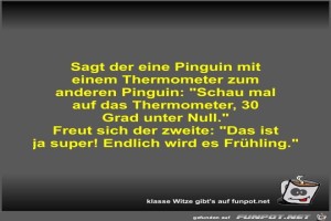 | Sagt der eine Pinguin mit einem Thermometer zum anderen... Bild (35.17 KB) 1Lustiges → klasse Sprüche und Witze | Lustiges → klasse Sprüche und Witze | 17.09.23-14:17 | Fossy | |