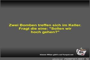 | Zwei Bomben treffen sich im Keller Bild (20.31 KB) 2Lustiges → klasse Sprüche und Witze | Lustiges → klasse Sprüche und Witze | 16.09.23-09:42 | Fossy | |