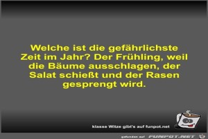 | Welche ist die gefährlichste Zeit im Jahr? Bild (32.05 KB) 2Lustiges → klasse Sprüche und Witze | Lustiges → klasse Sprüche und Witze | 17.09.23-18:58 | Fossy | |