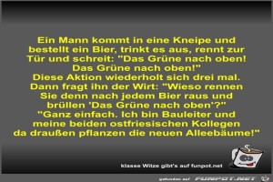 | Ein Mann kommt in eine Kneipe und bestellt ein Bier Bild (53.85 KB) 4Lustiges → klasse Sprüche und Witze | Lustiges → klasse Sprüche und Witze | 14.09.23-15:09 | Fossy | |