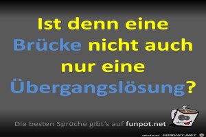 | Übergangslösung Bild (62.45 KB) 3Lustiges → klasse Sprüche und Witze Eine Brücke ist eine Übergangslösung für die Ewigkeit ;-) | Lustiges → klasse Sprüche und Witze | 14.09.23-14:14 | ||