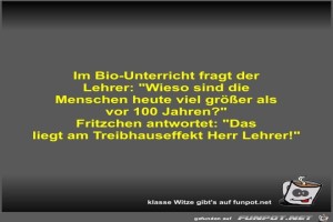 | Im Bio-Unterricht fragt der Lehrer Bild (29 KB) 3Lustiges → klasse Sprüche und Witze | Lustiges → klasse Sprüche und Witze | 12.09.23-16:38 | Fossy | |