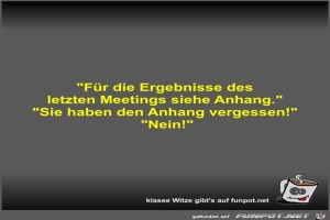 | Für die Ergebnisse des letzten Meetings siehe Anhang Bild (23 KB) 3Lustiges → klasse Sprüche und Witze | Lustiges → klasse Sprüche und Witze | 11.09.23-09:21 | Fossy | |