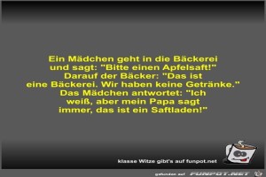 | Ein Mädchen geht in die Bäckerei und sagt Bild (32.88 KB) 5Lustiges → klasse Sprüche und Witze | Lustiges → klasse Sprüche und Witze | 09.09.23-14:03 | Fossy | |