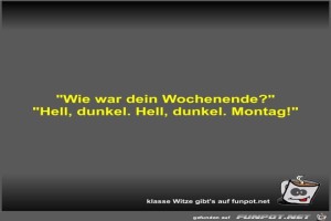 | Wie war dein Wochenende? Bild (18.06 KB) 3Lustiges → klasse Sprüche und Witze | Lustiges → klasse Sprüche und Witze | 10.09.23-09:18 | Fossy | |