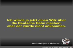 | Ich würde ja jetzt einen Witz über die Deutsche Bahn machen Bild (24.15 KB) 3Lustiges → klasse Sprüche und Witze | Lustiges → klasse Sprüche und Witze | 12.09.23-09:37 | Fossy | |
