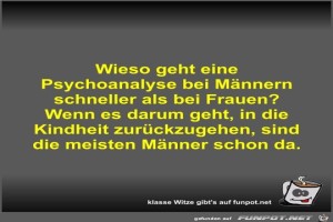 | Wieso geht eine Psychoanalyse bei Männern schneller als bei Bild (36.44 KB) 2Lustiges → klasse Sprüche und Witze | Lustiges → klasse Sprüche und Witze | 06.09.23-18:22 | Fossy | |