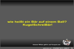 | wie heißt ein Bär auf einem Ball? Bild (18.05 KB) von Fossy am 05. September 2023 um 11:24 Uhr Lustiges → klasse Sprüche und Witze | Lustiges → klasse Sprüche und Witze | 05.09.23-11:24 | Fossy | ||