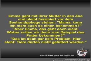 | Emma geht mit ihrer Mutter in den Zoo und bleibt fasziniert Bild (48.14 KB) 2Lustiges → klasse Sprüche und Witze | Lustiges → klasse Sprüche und Witze | 06.09.23-14:39 | Fossy | |