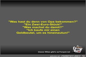 | Was hast du denn von Opa bekommen? Bild (24.83 KB) 1Lustiges → klasse Sprüche und Witze | Lustiges → klasse Sprüche und Witze | 28.08.23-09:47 | Fossy | |