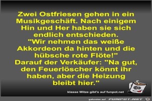 | Zwei Ostfriesen gehen in ein Musikgeschäft Bild (55.95 KB) 2Lustiges → klasse Sprüche und Witze | Lustiges → klasse Sprüche und Witze | 28.08.23-18:05 | Fossy | |