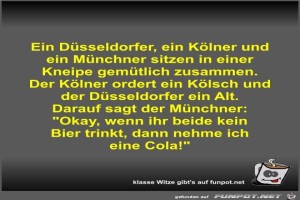 | Ein Düsseldorfer, ein Kölner und ein Münchner sitzen in... Bild (43.91 KB) 2Lustiges → klasse Sprüche und Witze | Lustiges → klasse Sprüche und Witze | 28.08.23-13:25 | Fossy | |