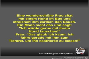 | Eine wunderschöne Frau sitzt mit einem Hund im Bus und... Bild (40.25 KB) 7Lustiges → klasse Sprüche und Witze | Lustiges → klasse Sprüche und Witze | 27.08.23-12:02 | Fossy | |