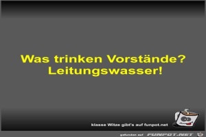 | Was trinken Vorstände? Bild (19.77 KB) von Fossy am 18. August 2023 um 11:30 Uhr Lustiges → klasse Sprüche und Witze | Lustiges → klasse Sprüche und Witze | 18.08.23-11:30 | Fossy | ||
