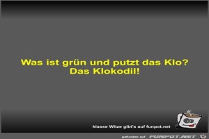 | Was ist grün und putzt das Klo? Bild (16.65 KB) 2Lustiges → klasse Sprüche und Witze | Lustiges → klasse Sprüche und Witze | 17.08.23-09:49 | Fossy | |