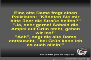 | Eine alte Dame fragt einen Polizisten Bild (46.39 KB) 7Lustiges → klasse Sprüche und Witze | Lustiges → klasse Sprüche und Witze | 19.08.23-14:00 | Fossy | |