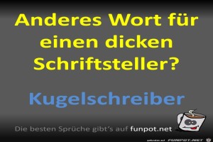 | Kugelschreiber Bild (67.12 KB) 9Lustiges → klasse Sprüche und Witze Kugelschreiber ist doch eine nette Bezeichnung für einen dicken Schriftsteller :-) | Lustiges → klasse Sprüche und Witze | 15.08.23-09:14 | ||