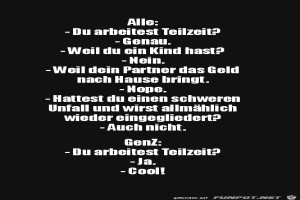 | Teilzeit arbeiten Bild (66.55 KB) 2Lustiges → klasse Sprüche und Witze | Lustiges → klasse Sprüche und Witze | 15.08.23-08:39 | Julia | |