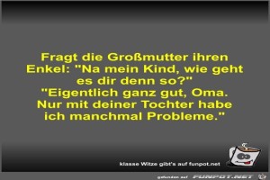 | Fragt die Großmutter ihren Enkel Bild (33.83 KB) 5Lustiges → klasse Sprüche und Witze | Lustiges → klasse Sprüche und Witze | 13.08.23-17:45 | Fossy | |