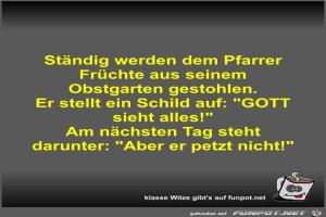 | Ständig werden dem Pfarrer Früchte aus seinem Obstgarten... Bild (37.09 KB) 2Lustiges → klasse Sprüche und Witze | Lustiges → klasse Sprüche und Witze | 12.08.23-18:59 | Fossy | |