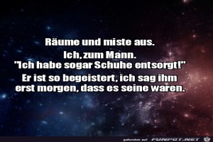 | Ausgemistet Bild (85.82 KB) 9Lustiges → klasse Sprüche und Witze | Lustiges → klasse Sprüche und Witze | 15.08.23-08:39 | ||