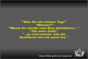 | "Was für ein mieser Tag!" Bild (25.06 KB) 4Lustiges → klasse Sprüche und Witze | Lustiges → klasse Sprüche und Witze | 16.10.-18:18 | Fossy | |