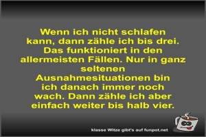 | Wenn ich nicht schlafen kann Bild (42.58 KB) 1Lustiges → klasse Sprüche und Witze | Lustiges → klasse Sprüche und Witze | 16.10.-10:51 | Fossy | |