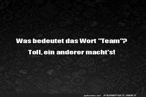 | Teamwork auf seine Art erklärt Bild (79.53 KB) 1Lustiges → klasse Sprüche und Witze | Lustiges → klasse Sprüche und Witze | 15.10.-14:38 | ||