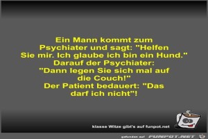 | Ein Mann kommt zum Psychiater und sagt Bild (34.25 KB) 6Lustiges → klasse Sprüche und Witze | Lustiges → klasse Sprüche und Witze | 25.07.23-09:30 | Fossy | |