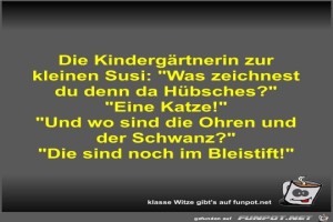 | Die Kindergärtnerin zur kleinen Susi Bild (37.96 KB) 2Lustiges → klasse Sprüche und Witze | Lustiges → klasse Sprüche und Witze | 23.07.23-14:32 | Fossy | |