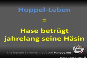 | Hoppel-Leben Bild (55.28 KB) 6Lustiges → klasse Sprüche und Witze Hoppel-Leben hört sich auf jeden Fall netter an als Doppel-Leben! | Lustiges → klasse Sprüche und Witze | 24.07.23-14:12 | ||