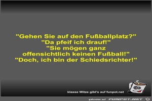 | Gehen Sie auf den Fußballplatz? Bild (28.58 KB) 3Lustiges → klasse Sprüche und Witze | Lustiges → klasse Sprüche und Witze | 22.07.23-11:13 | Fossy | |