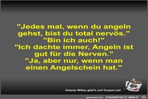 | Jedes mal, wenn du angeln gehst, bist du total nervös Bild (37.9 KB) 4Lustiges → klasse Sprüche und Witze | Lustiges → klasse Sprüche und Witze | 20.07.23-13:09 | Fossy | |