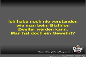 | Ich habe noch nie verstanden wie man beim Biathlon Zweiter Bild (27.51 KB) 3Lustiges → klasse Sprüche und Witze | Lustiges → klasse Sprüche und Witze | 14.07.23-10:09 | Fossy | |